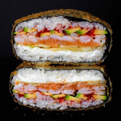 Ryż Kurczak Wędzony Serek Philadelphia Sałatka Karbowana Papryka Czerwona Ser Cheddar Sos Spicy Sos Terijaki